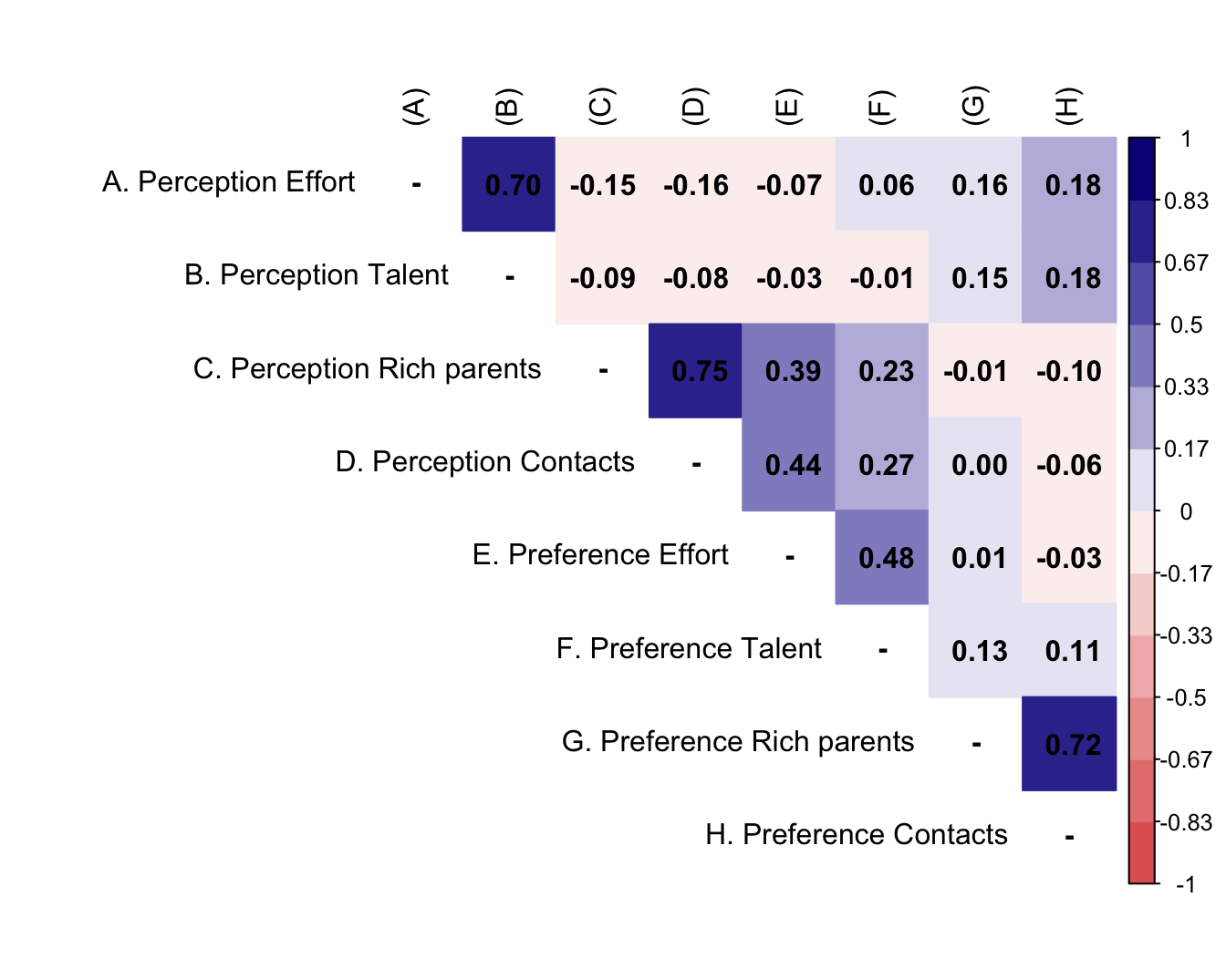 - Preference for meritocracy: normative support for rewarding effort and talent