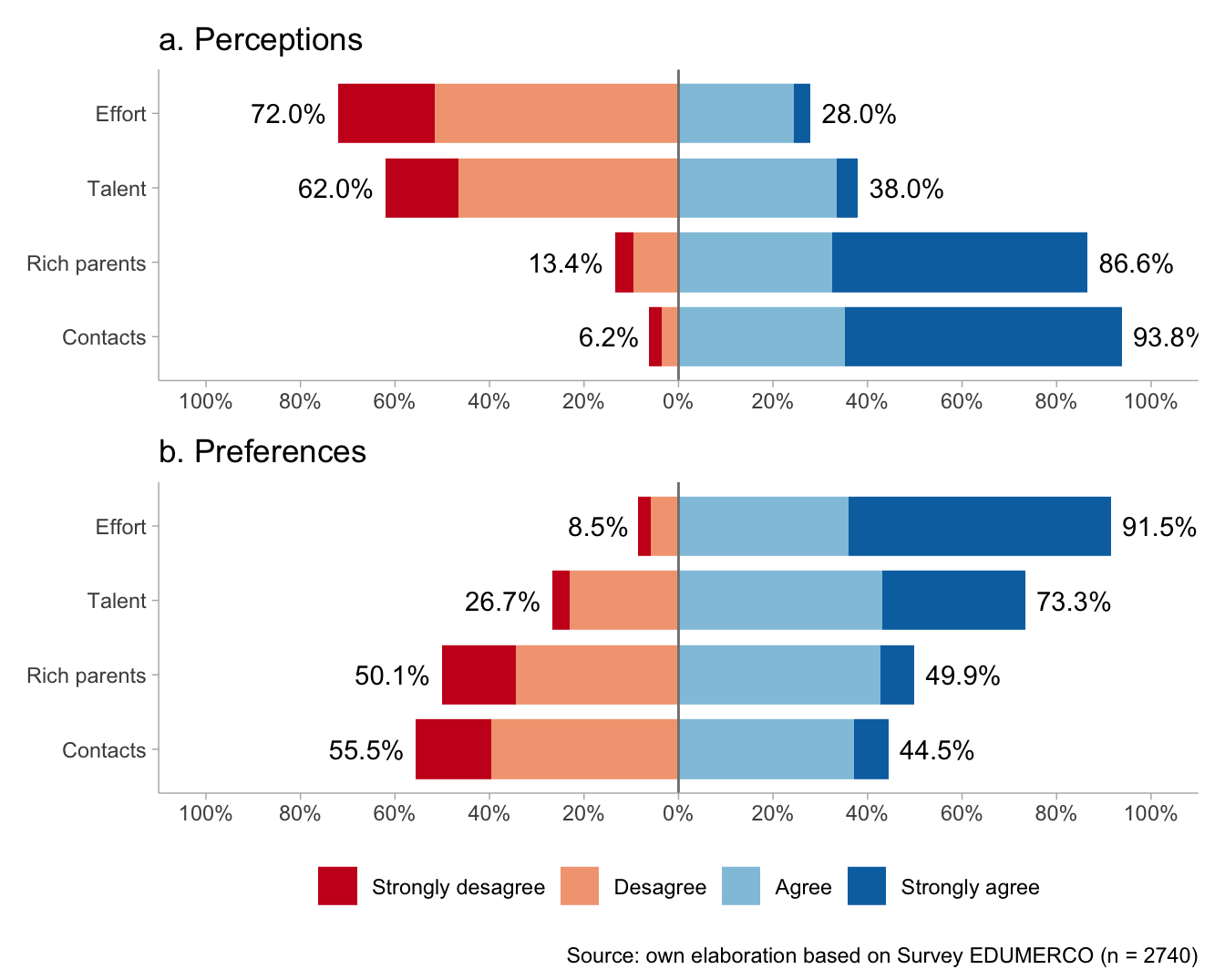 | Perception | Meritocratic | In Chile people are rewarded for their efforts | En Chile las personas son recompensadas por sus esfuerzos |