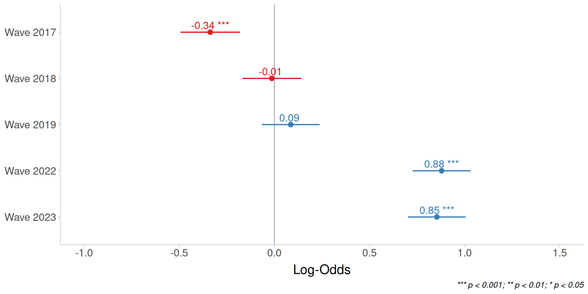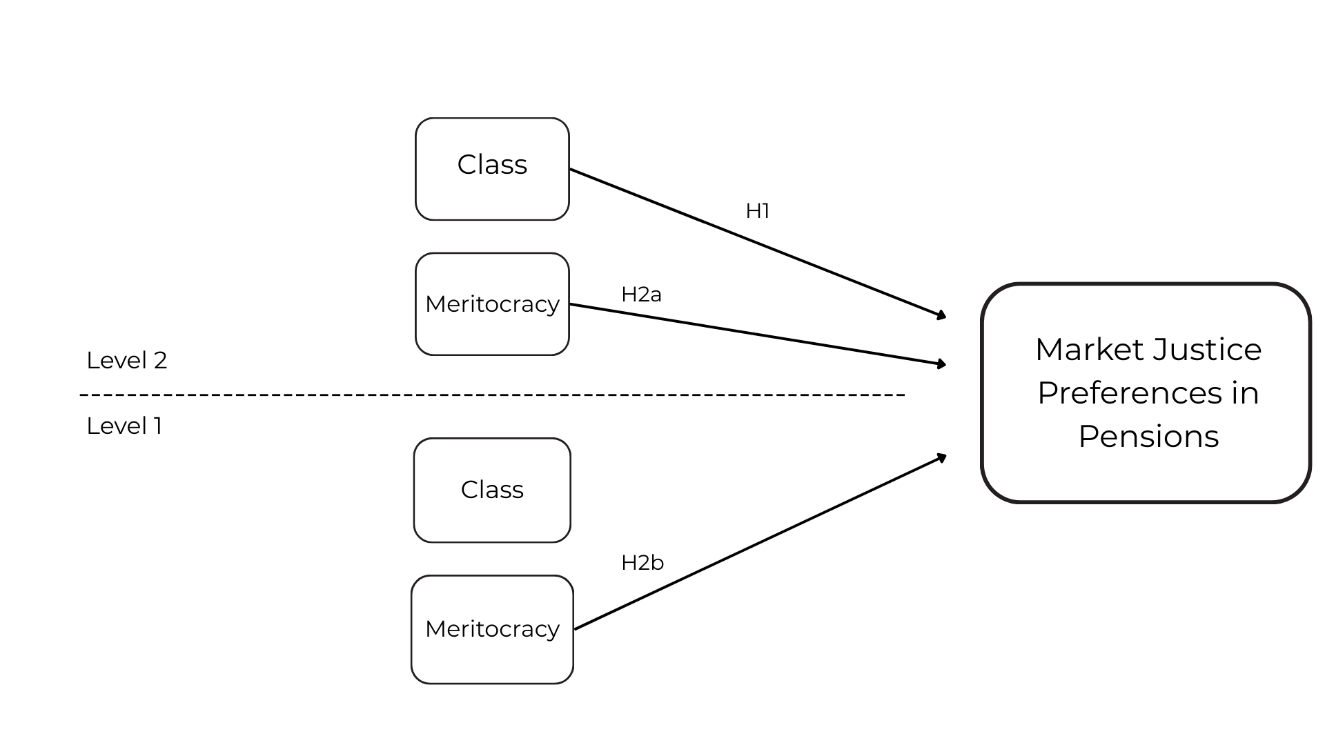 \(H2_{b} \; (\text{Within-person}):\) cuando una misma persona fortalece sus percepciones meritocráticas a lo largo del tiempo, su preferencia por justicia de mercado en pensiones aumenta