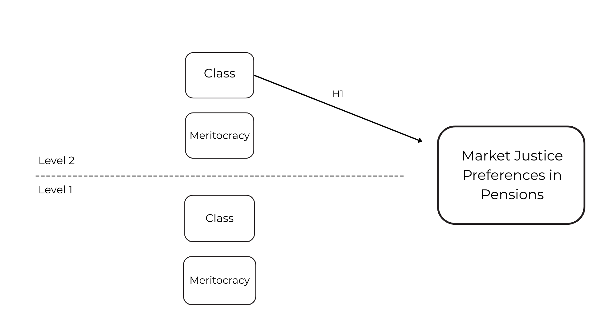 \(H1_ \; (\text{Between-person}):\) quienes pertenecen a clases altas exhiben, en promedio, una mayor preferencia por justicia de mercado en pensiones que quienes pertenecen a clases bajas
