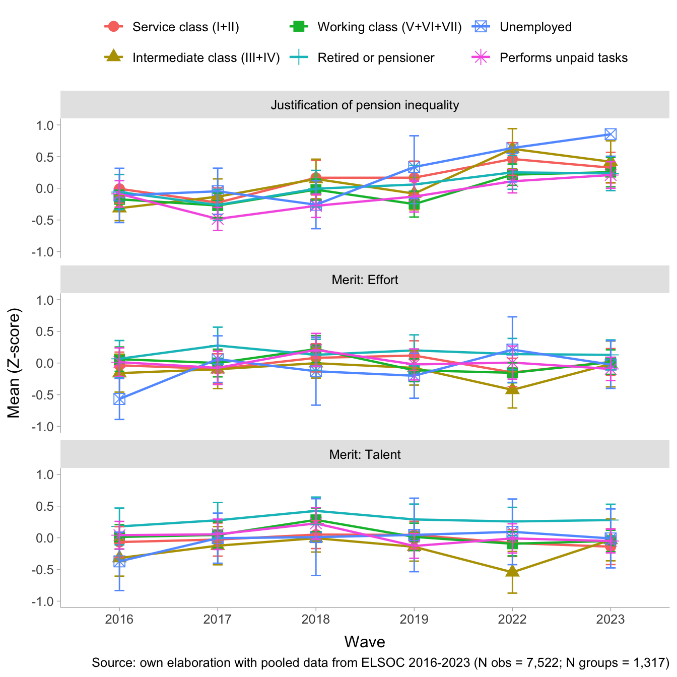 This is the analysis code for the paper “Changes in the Justification of Pension Inequality in Chile (2016–2023) and its Relationship to Social Class and Beliefs in Meritocracy”. The dataset used is df_balanced.RData.